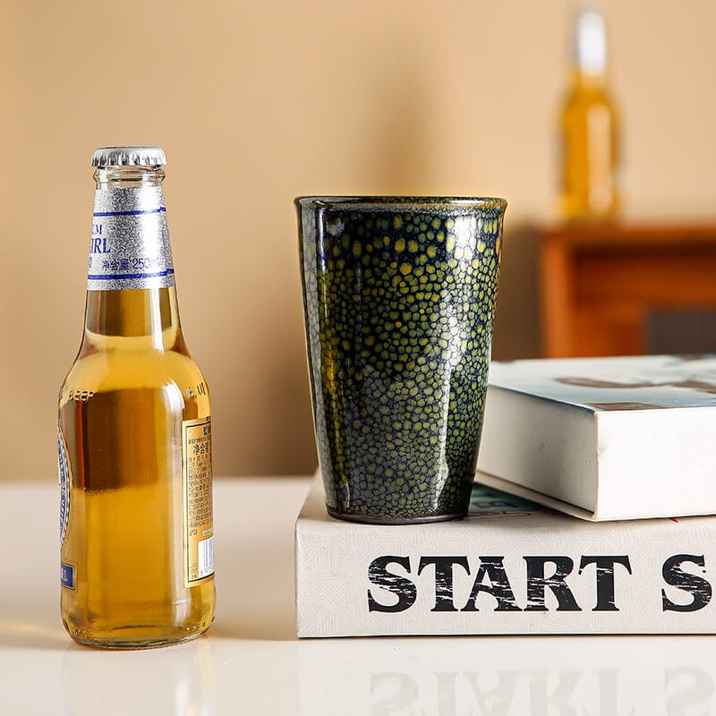 The Wood Beer Cup is a 300ml green-brown ceramic beer mug with forest-inspired glaze — earthy, grounding, and perfect for mindful sips.